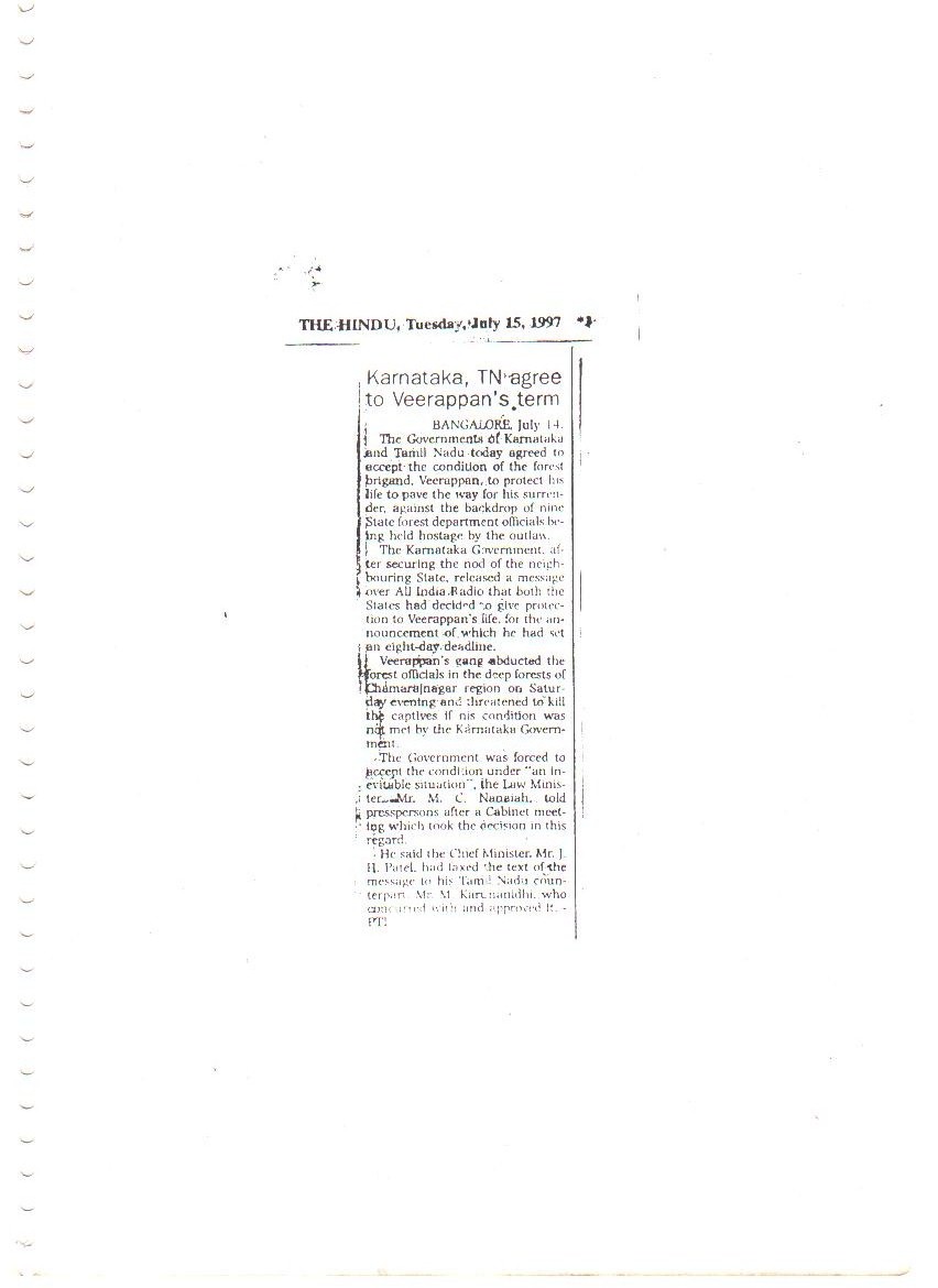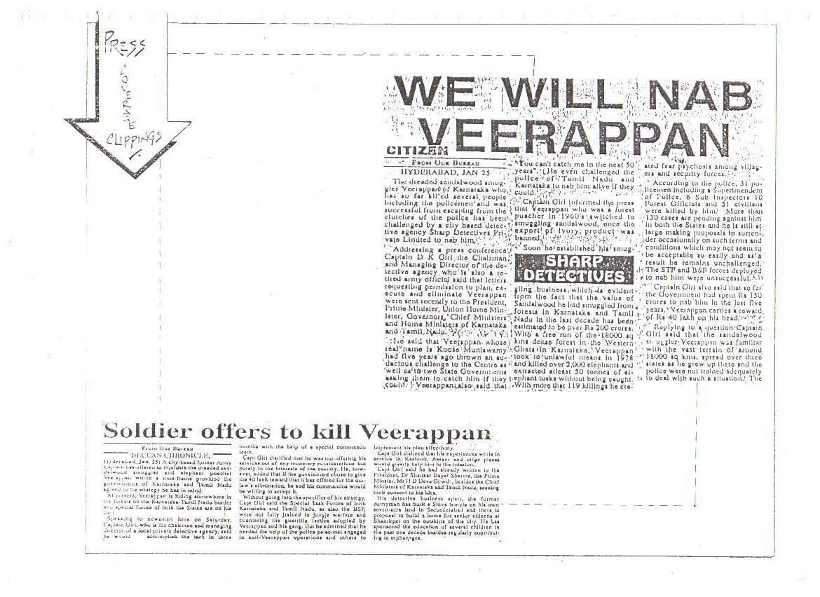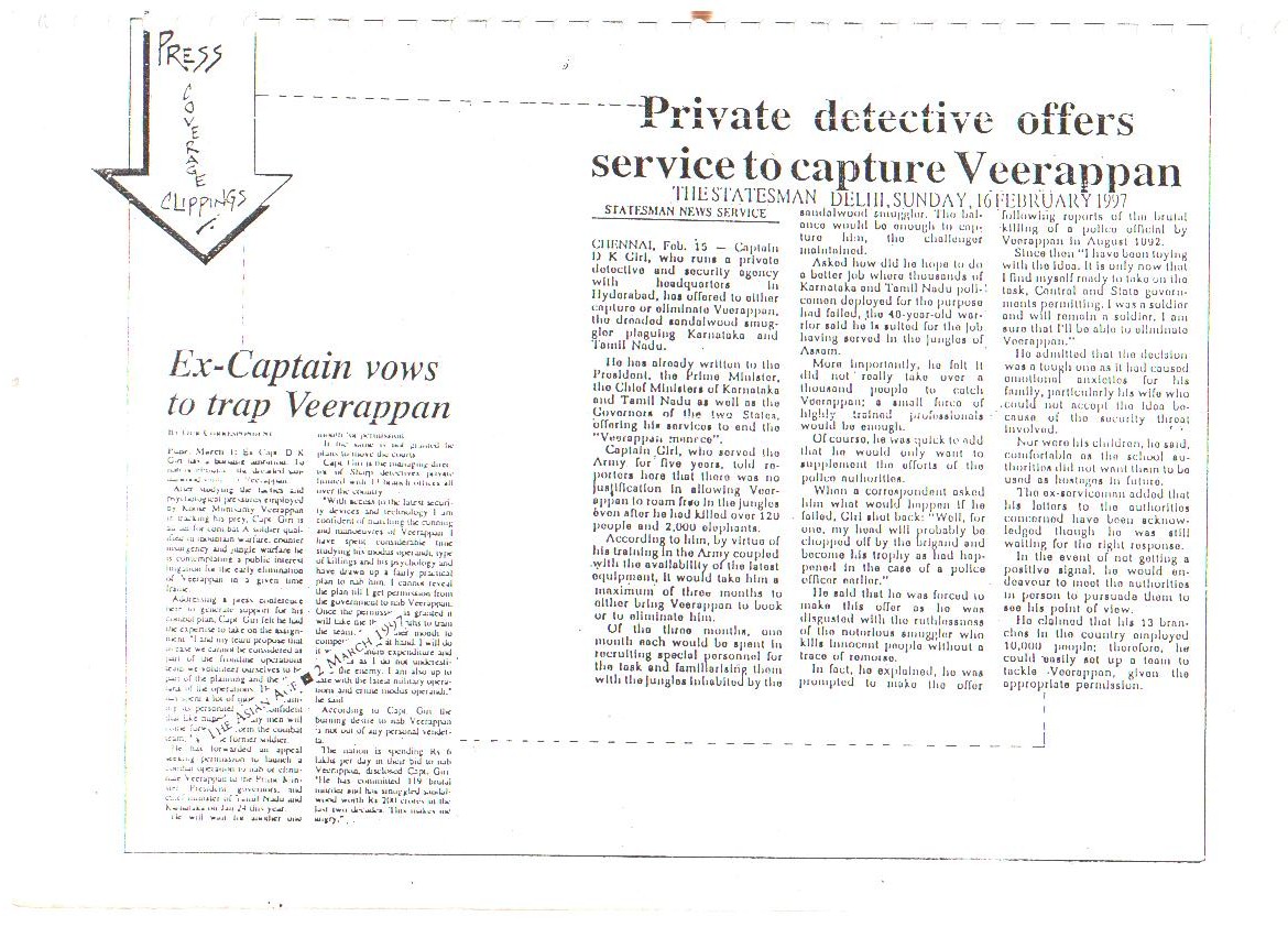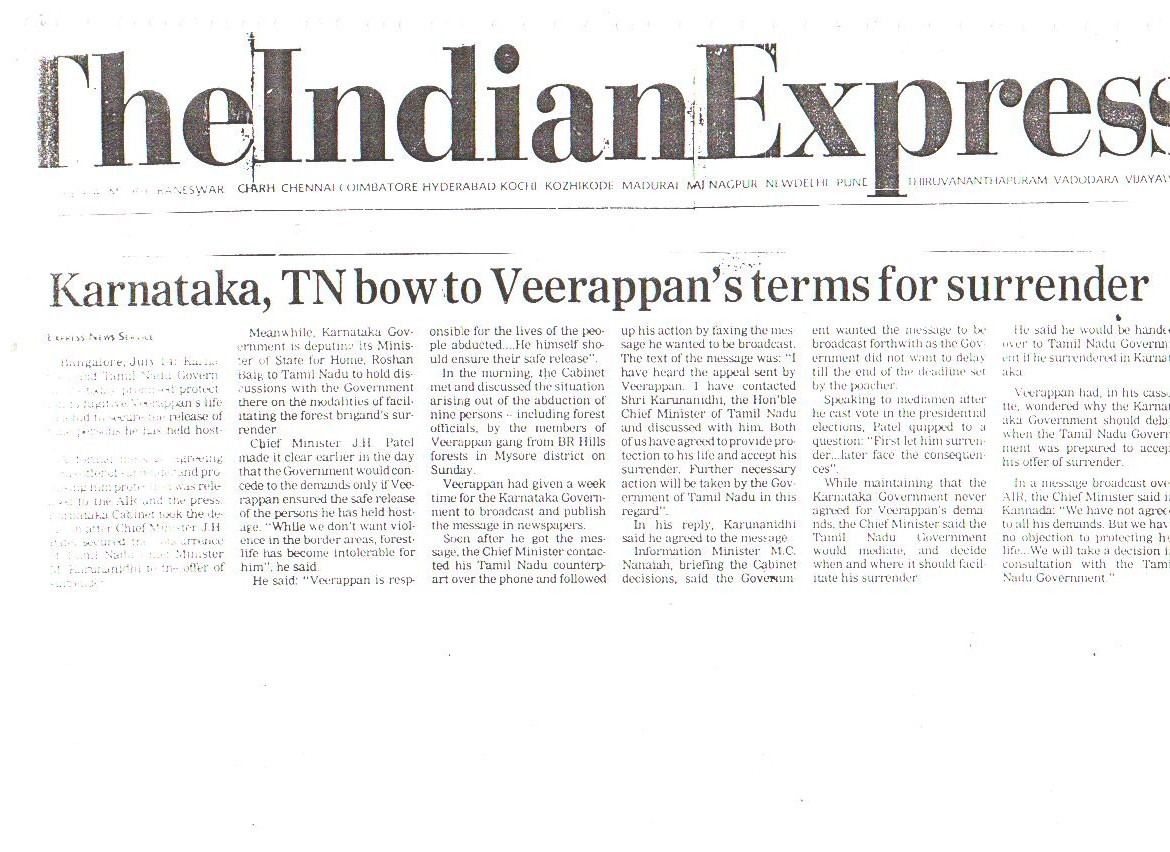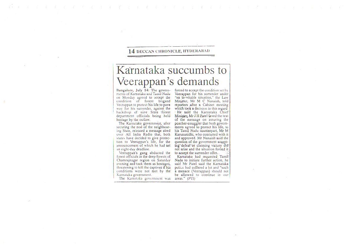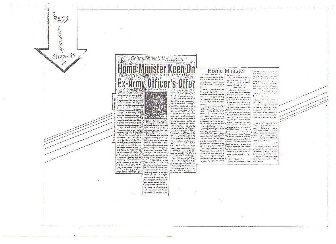 Our confidence and capabilities go to the extent that we dared and offered to trace down, catch or eliminate the Jungle Brigand Veerappan, the man who had murdered 132 men and poached 2,000 elephants. This was made possible only due to the concerted, determined and selfless services rendered by all ranks of our organization.